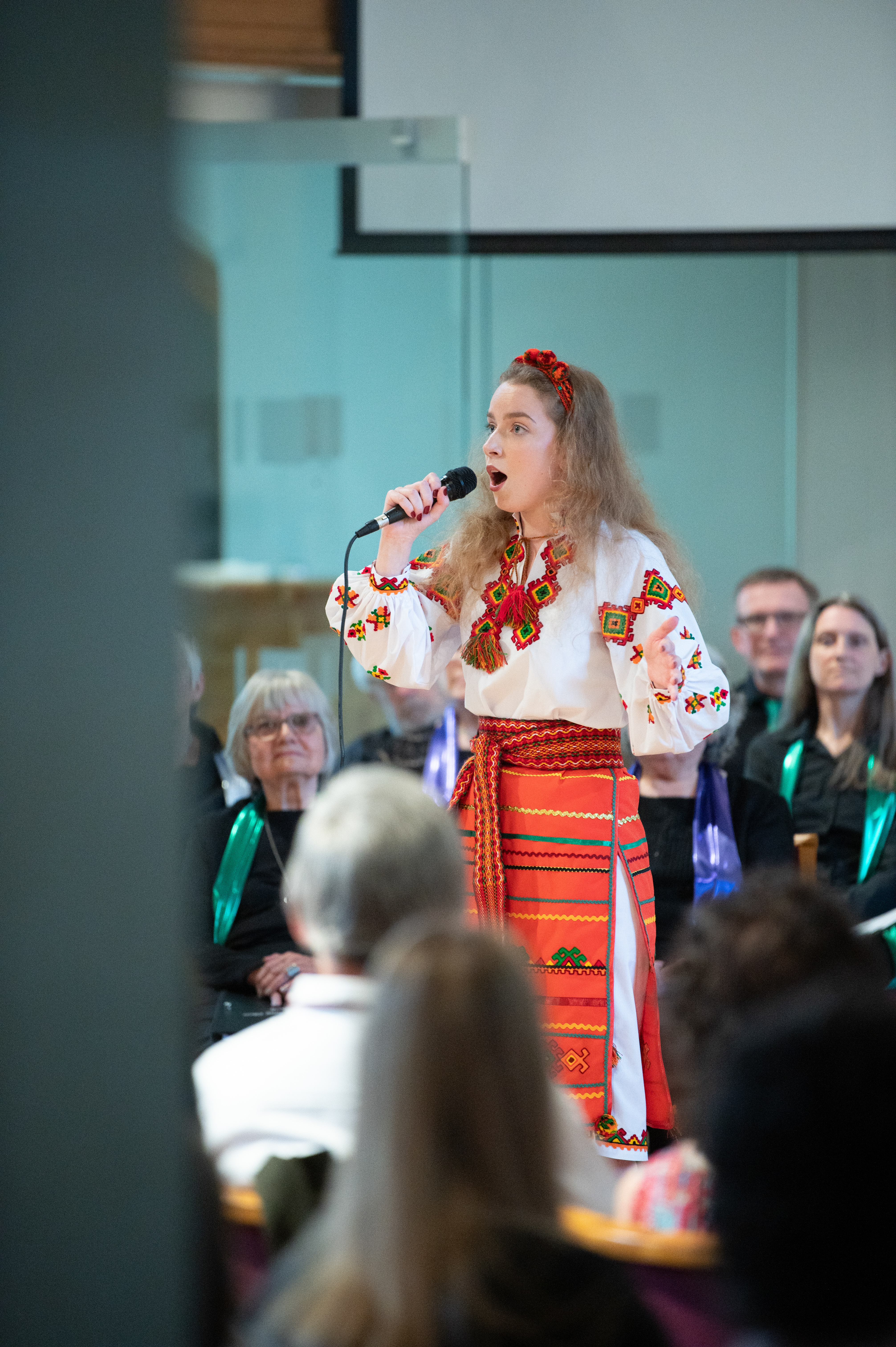 The event kicks off with Nicole's mesmerising performance, leaving a profound impression on the audience. Through the photographs, we can witness the emotions on the faces of both the performers and the spectators. Nicole's dedication to her craft is evident as she gracefully transitions from one traditional Ukrainian costume to another, each holding a unique meaning relevant to her various performances.